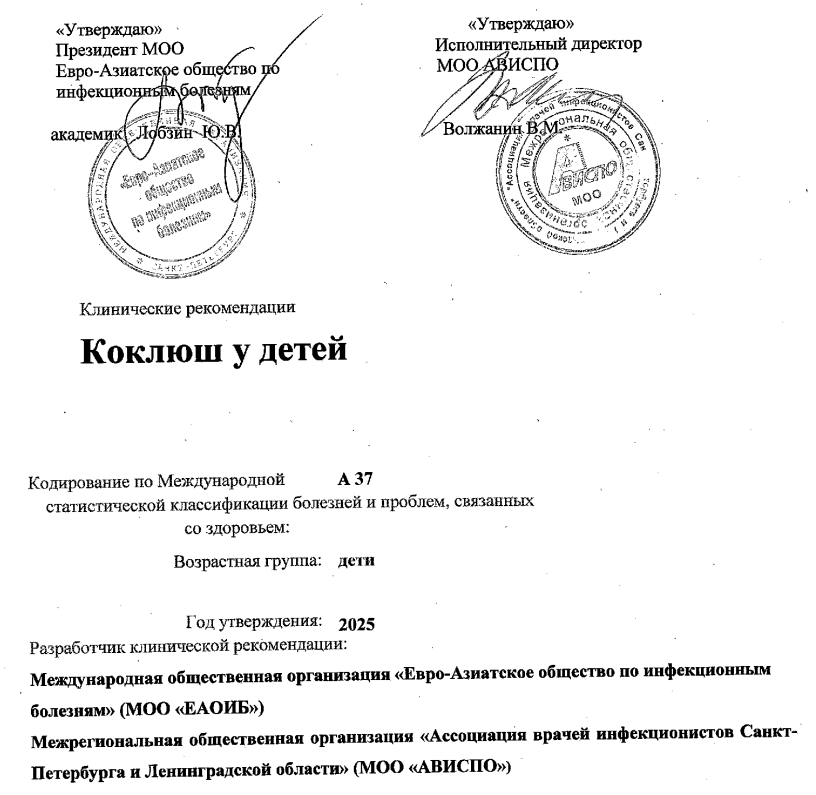 Клинические рекомендации «Коклюш у детей», 2025 — Docsfera.ru